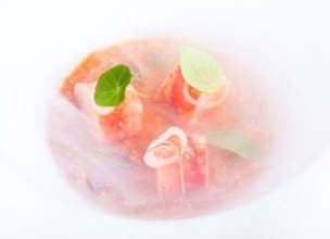 Propuestas como el dumpling de morro de cochino negro, carabinero en jugo de sus cabezas y tapioca, cherne con gazpachuelo de vinagre macho, ostras con vinagre de lichi, raviolis de queso bodega Montesdeoca y caldo de lentejas o el chocolate tostado con yogur, anís y limón serán algunos de los protagonistas de esta carta. Todas ellas son recetas que crean un universo variado de sabores concentrados en platos deliciosos y técnicamente perfectos.