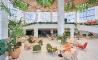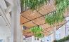 La decoración bold se corona como la nueva tendencia para aquellos que buscan un ambiente relajado. Si algo caracteriza al B-Lounge Lobby Bar es su agradable diseño, con una combinación de materiales naturales y mármol, columnas y otros elementos con acabados biselados, así como multitud de plantas verdes; que, juntos, aúnan comodidad, sobriedad y elegancia, transmitiendo una clara sensación de tranquilidad y protección. Por su parte, las sillas presentan respaldos de líneas curvas, con reposabrazos en madera que aportan un plus de calidez; mientras que la cubierta está confeccionada a partir de Cañizo de bambú Bambooflex y plantas colgantes. Sin embargo, la protagonista es la impresionante escalera central en forma curva, que remplaza la rectitud del minimalismo clásico por formas orgánicas, lo que la convierte en el centro de todas las miradas.
