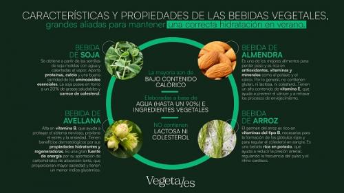 De esta manera, si mantenemos una alimentación sana y variada podemos llegar a cubrir casi la mitad de las necesidades de hidratación diarias a través de los alimentos, necesitando solamente ingerir entre 4-6 vasos de agua adicionales al día. Y las bebidas vegetales son grandes aliadas para mantener una correcta hidratación en esta época estival. Estas bebidas están elaboradas a base de agua e ingredientes vegetales, no contienen lactosa ni colesterol, la mayoría son de bajo contenido calórico, tienen un alto contenido en agua (hasta el 90%) y sus componentes son fácilmente asimilables y digeribles.