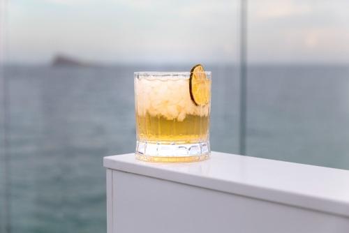 Dos cócteles realizados por Ángela Jiménez, maître y responsable de los restaurantes y bares de Barceló Benidorm Beach, que ponen en valor el mejor producto local de Alicante, con especial atención a la que promete convertirse en la bebida de la temporada. Se trata del cóctel bautizado como Alicante Spritz, a base de lícor amargo de naranja, perfecto para refrescar el verano y disfrutar de esta experiencia tan mediterránea.