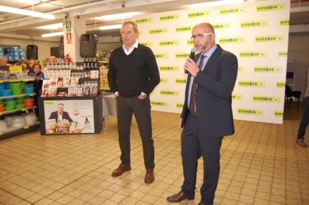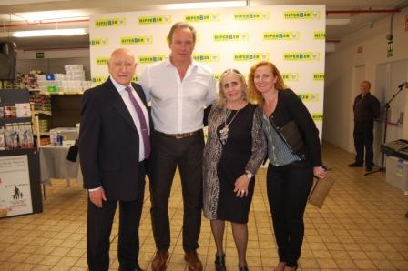 El conocido cantante y actor Bertín Osborne visitó ayer la tienda Hiperber de la calle Reina Victoria en Elche para presentar su gama de productos de alimentación que se venden en los supermercados de la cadena. Los artículos, que incluyen gazpachos, vino, ibéricos o quesos, entre otros, tienen un fin solidario y de apoyo a la fundación creada por el artista para ayudar a niños con parálisis cerebral y sus familias.
