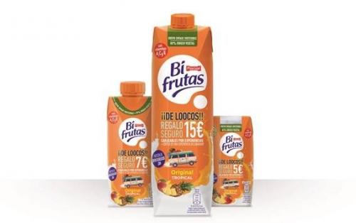 Durante este verano, Bifrutas ha diseñado una campaña donde el consumidor va a ganar un premio seguro por la compra de cualquiera de los formatos de su gama Original y, además, entra automáticamente en el sorteo de un viaje de una semana en Caravana. Todos los formatos de la gama más icónica de la marca estrenan un nuevo packaging donde viene reflejada la cuantía de euros que podrán canjear directamente por una de las experiencias disponibles, desde los 5 euros del brik de 200ml a los 15 euros del formato de 1 litro.