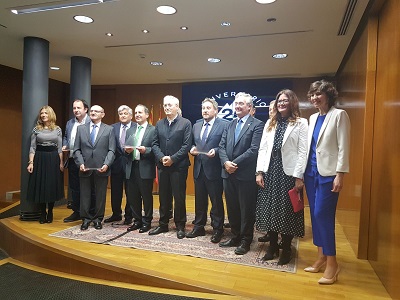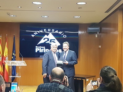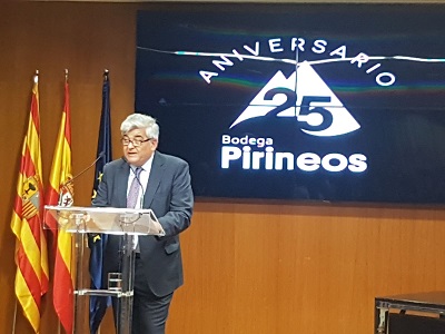 Bodega Pirineos (Grupo Barbadillo) celebra su 25º aniversario manteniendo su liderazgo dentro de la D.O. Somontano. El acto principal se desarrolla en la sede de las Cortes de Aragón, en el Palacio de la Aljafería y cuenta con la presencia de los consejeros de Vertebración Territorial, José Luis Soro y de Desarrollo Rural y Sostenibilidad, Joaquín Olona; diversas autoridades de Aragón; de la provincia de Huesca; comarca de Somontano; ayuntamiento de Barbastro y de Alquézar y representantes de la D.O. Somontano y de sus bodegas. Todos ellos arropados por el presidente del Grupo Barbadillo, Manuel Barbadillo, junto a diferentes cargos del grupo Barbadillo.
