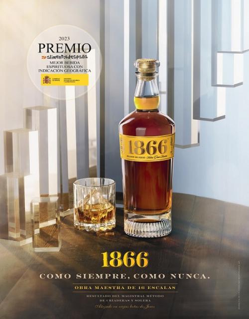 Brandy de Jerez 1866 continúa atesorando reconocimientos y consigue posicionarse como la Mejor Bebida Espirituosa de España en los Premios Alimentos de España 2023 organizados por el Ministerio de Agricultura, Pesca y Alimentación (MAPA).