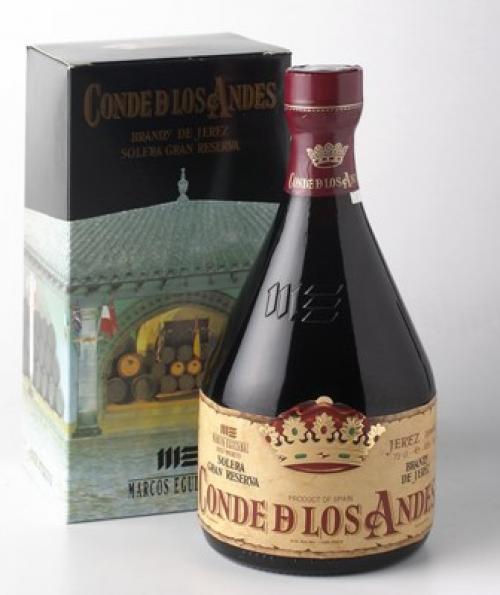 El Brandy Conde de los Andes S. GR. está amparado bajo la Denominación de Específica Brandy de Jerez y es Solera Gran Reserva. La antigüedad de su solera es de 1876. Está vestido de tonos ámbar oscuro con dejos de caoba … vivos y brillantes. De aroma amplio, complejo y sostenido donde se conjugan la expresión de un hermoso brandy y su noble crianza de madera. En boca es madura, redondo y largo; muy cálido en el postgusto. En definitiva un brandy equilibrado, elegante hermoso, único. El brandy es una bebida espirituosa obtenida a partir de aguardientes destilados de vino envejecida en recipientes de roble. Para que sea considerado “Brandy de Jerez” los aguardientes de vino deben ser de calidad tanto en nariz como en boca, dejándose percibir el afrutado de su procedencia; la zona de elaboración y envejecimiento debe ser los municipios que pertenecen a la Denominación Específica; el sistema de elaboración y envejecimiento ha de ser el tradicional de criaderas y soleras; han de emplearse siempre botas de roble americano previamente envinadas con vino de Jerez.