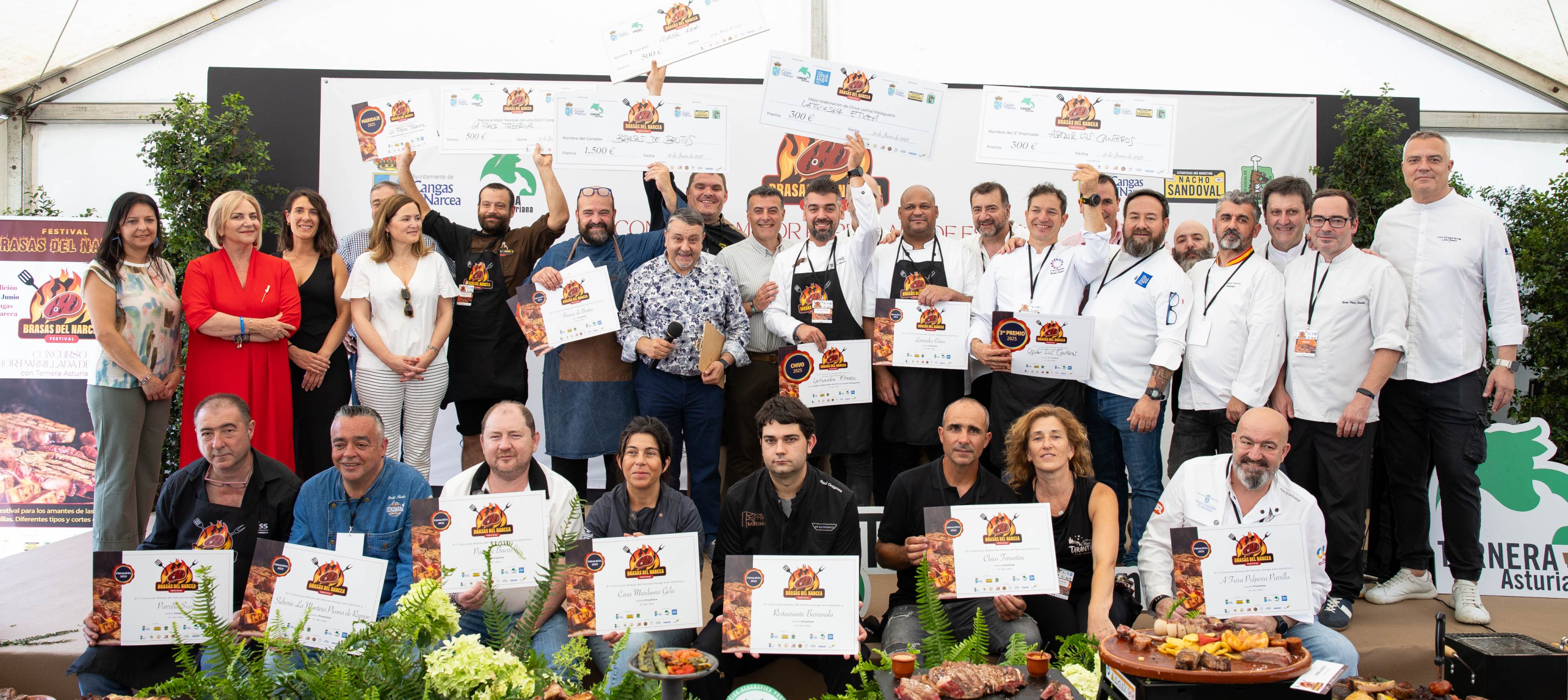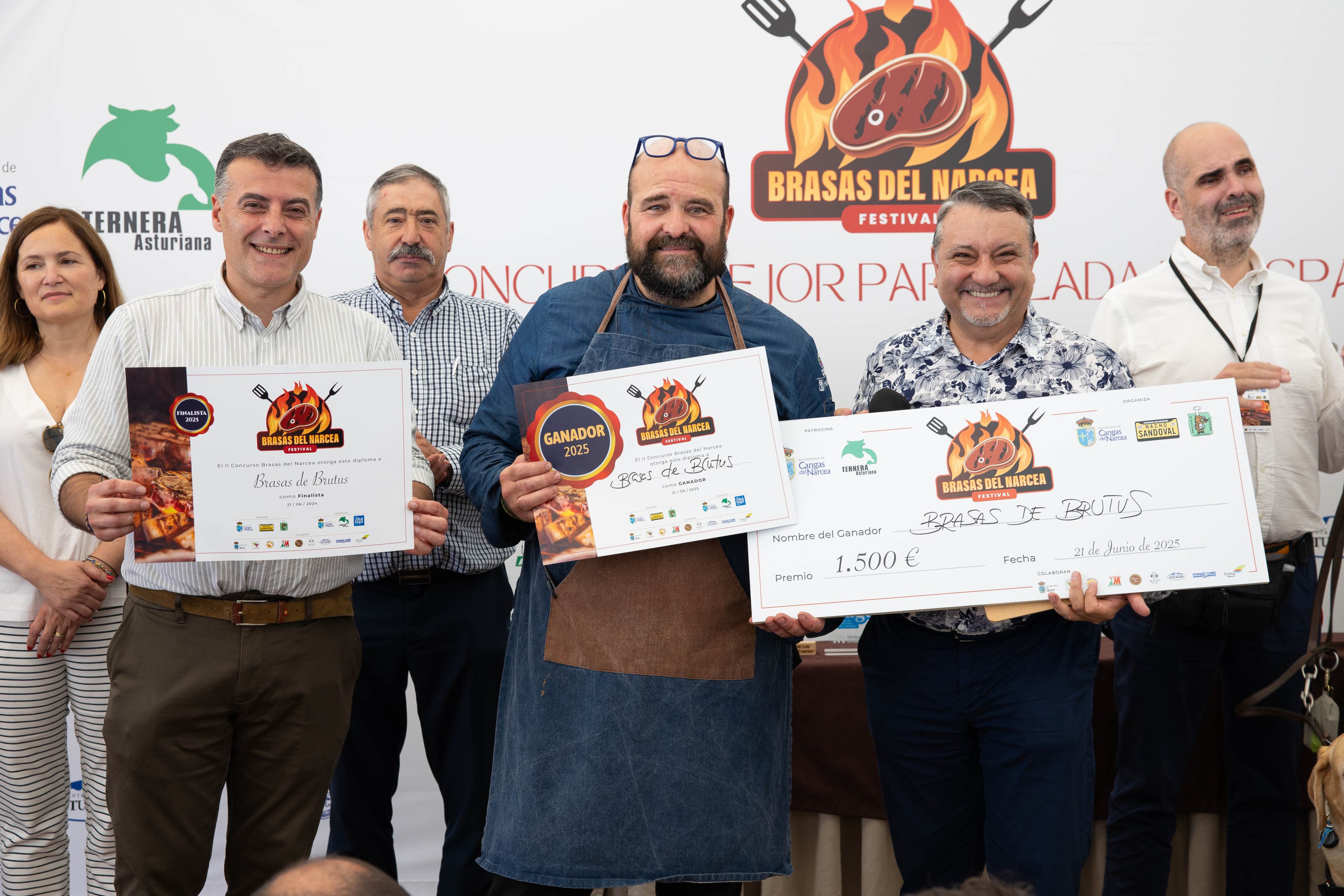 La empresa de Catering Brasas de Brutus (Madrid), se ha alzado con el primer premio del Concurso Mejor Parrillada de España con Ternera Asturiana. Ha sido en Cangas de Narcea, donde 12 finalistas han competido por ser el mejor en cocinar sobre las brasas los diferentes cortes y alcanzar el punto óptimo de la carne en cada pieza.