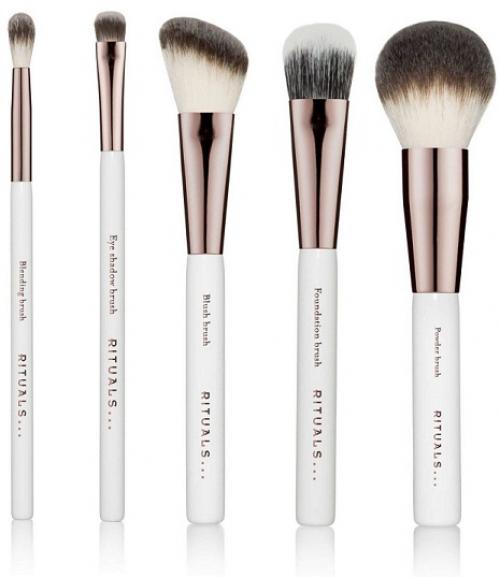 5 brochas de maquillaje realizadas con pelo sintético 100% de la mejor calidad, mangos de madera y embellecedores rosa-cobrizo que las convierten además en bellas herramientas para usar a diario.