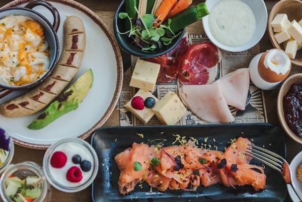 Brochetas de fruta, yogurt griego con muesli o una amplia selección de productos salados entre los que disfrutarás de jamón ibérico, pavo braseado, queso gouda con nueces, mini crudités con salsa de queso azul y un espectacular salmón ahumado. Pero, todavía hay más, aguacate a la parrilla, salchichas Bratwurst, croquetas caseras de jamón, y la estrella de todo buen brunch: los huevos, ya sean revueltos, fritos, poché o benedictinos (con un suplemento de 6 euros).