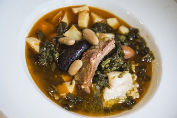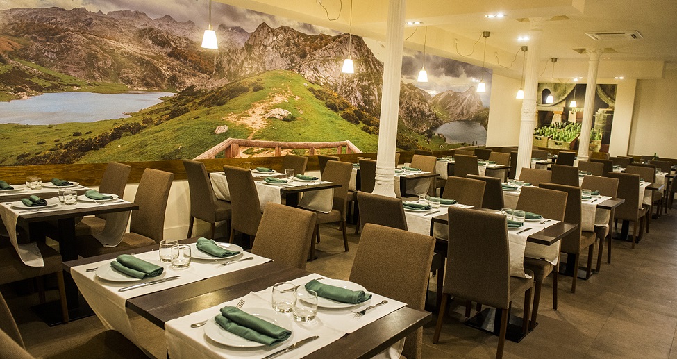 Como platos fuertes, sus Cachopos, la Fabada asturiana, los estupendos cortes de ternera Xata Roxa, o la Parrillada de carnes, perfecta para ‘espichas’ o comilonas, o guisos como el Pollo picantón a la sidra con patatas y pimiento. Todos ellos dan forma a una carta completa y accesible, de lo más asturiana, que se convierte en el complemento ideal de la verdadera protagonista: la sidra, que se vende por botellas a 3’50 €. Disponen de menú del día por tan sólo 9’90 € y menús de grupos desde 22 € con barra libre de sidra incluida. Para el que no quiera abusar del jugo de manzana, también tienen vino y una suculenta oferta de caña más pincho por 1’20 €. Muchas alternativas para disfrutar, bien desde la zona de la barra en sus taburetes, de pie en torno a los barriles, o bien desde los dos comedores con sosegadoras vistas a los lagos de Covadonga retratados en sus paredes.