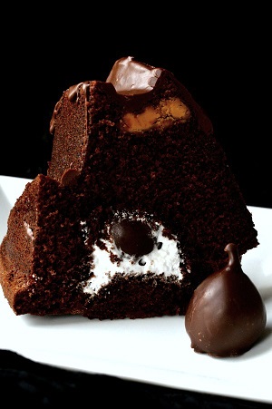 BUNDT CAKE DE CHOCOLATE RELLENO DE MERENGUE Y RABITOS ROYALE