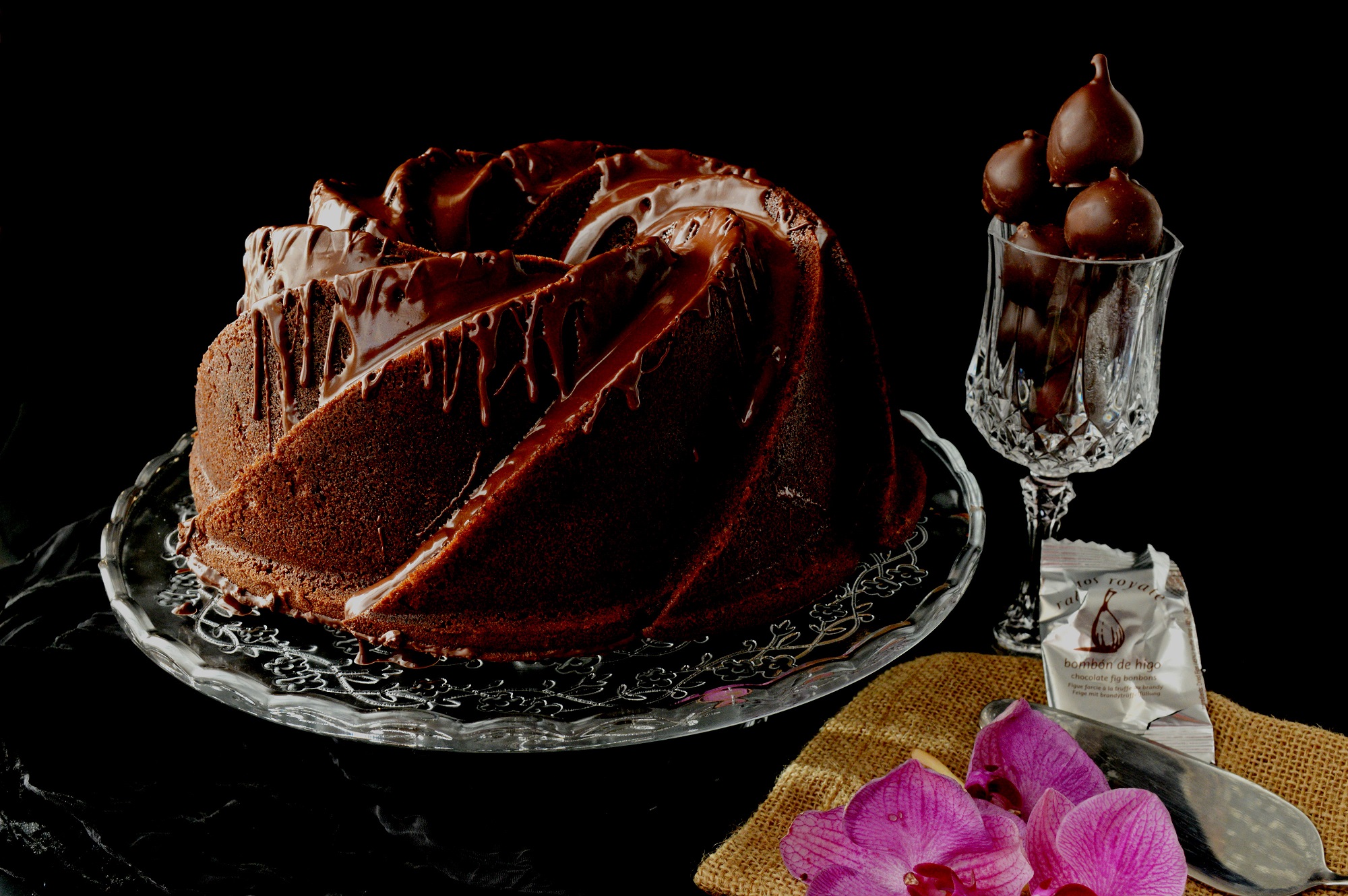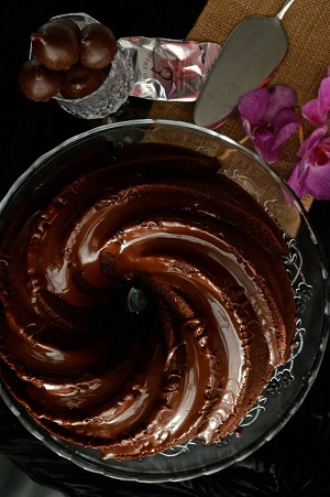 · Damos la vuelta al bundt cake sobre el stand que vayamos a servirlo y lo cubrimos con el chocolate aún derretido.