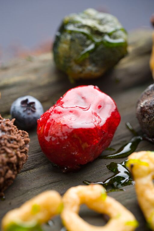 Pero el otoño también es tiempo de conserva casera, mermeladas y compotas laboradas con frutos otoñales, como la zarzamora que vamos encontrando en nuestro camino y que ha utilizado José Fernández en el Buñuelo de Frutos del Bosque, elaborado con un semiconfitado de bayas, arándanos y zarzamoras.