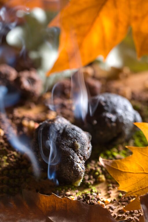 Después del paseo y con el frío en la puerta dan ganas de encender algo de fuego y sentarnos alrededor de la chimenea, así que imaginamos el olor de la leña y el humo con el último buñuelo de la colección, el Buñuelo de Crema de Queso con humo, un buñuelo relleno de crema de queso ahumada con madera de encina que recordará cuando los pastores se sentaban alrededor del fuego. Este último aroma nos recuerda que es hora de volver a casa, de cerrar las ventanas y buscar un rincón junto a la lumbre donde sentarnos a terminar de saborear los Buñuelos de Otoño que hayan podido quedar en la caja que nos hemos llevado al paseo de la tarde.
