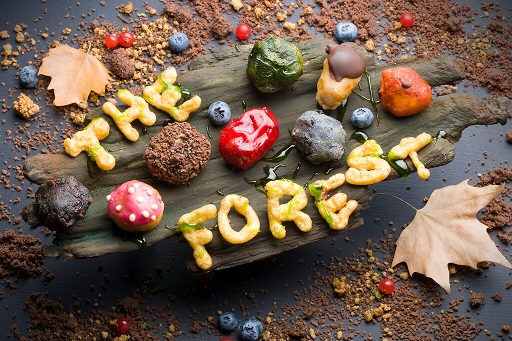José Fernández ha querido recrear los aromas y olores que percibimos cualquier tarde de otoño mientras damos un paseo por el bosque con familiares o amigos tras una comida entrañable. Y así surgen ocho buñuelos de distintos sabores que conforman esta colección de Buñuelos de Otoño.