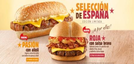La cadena de restauración se une de nuevo a la fiebre del fútbol y presenta dos nuevas hamburguesas para apoyar al equipo nacional: PASIÓN y ROJA. Dos combinaciones inspiradas en la gastronomía de nuestro país y en cuya creación, el equipo de innovación de BURGER KING® ha puesto todo el espíritu y la fuerza que caracterizan a la afición española.