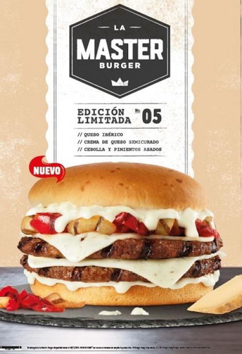 Burger King® España, sociedad que pertenece a Restaurant Brands Iberia, lanza al mercado su quinta hamburguesa de edición limitada: La Master Burger, que destaca por su sabor único creado a partir de productos locales -como pimientos y cebolla asados que provienen de Murcia, Aragón y Navarra-. Se trata de una combinación de ingredientes diferente a las que se ofrecen actualmente en el sector de la restauración y estará disponible desde hoy en todos los restaurantes de España por tiempo limitado.