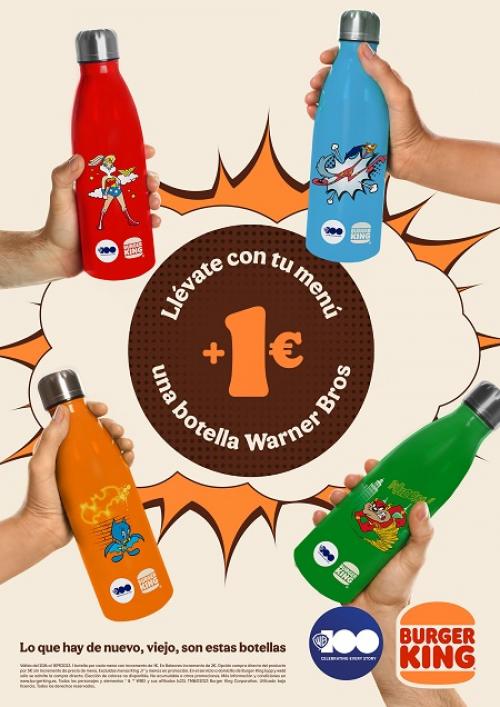 Burger King® y Warner Bros invitan a pequeños y mayores a la que va a ser la mayor fiesta de aniversario de todos los tiempos. Entre las sorpresas que tienen preparadas para sus fans, se encuentra una botella Warner Bros de aluminio personalizado con los personajes de los Looney Tunes disfrazados de la Liga de la Justicia. Así, niños y no tan niños, que quieran refrescarse este verano de la mano de sus personajes míticos favoritos, pueden elegir entre cuatro diseños exclusivos con su menú, por tan solo un euro más o dos en las Islas Baleares, o adquirir su botella por cinco euros directamente sin menú.