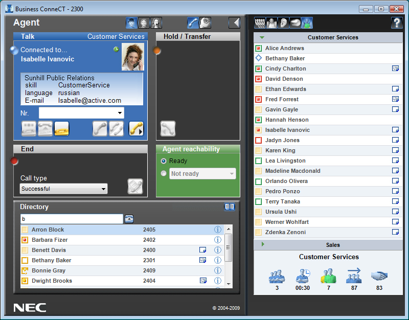 NEC ha desarrollado la aplicación Business ConneCT como su solución de Comunicaciones Unificadas “todo-en-uno”, que permite que los empleados puedan intercambiar de forma sencilla las distintas funciones de una empresa, es decir, puesto de empleado, puesto de contact centre y puesto de operador.