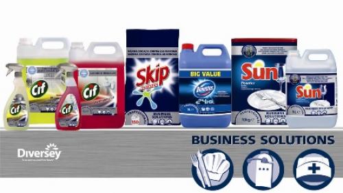 Diversey une su experiencia de más de un siglo en productos y sistemas de limpieza e higiene profesional a marcas de reconocido prestigio como Cif, Skip, Domestos y Sun, para crear Business Solution.