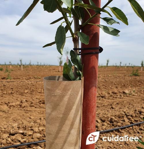 La innovación de este protector reside en que está fabricado con fibra de madera, un material natural que se presenta como una alternativa más sostenible y eficaz a los clásicos protectores de plástico o alambre. “El material que utilizamos en Cuidatree se degrada en unos seis años, lo que destaca frente a los 150 que tarda en desaparecer el plástico. Además, es asimilado más rápidamente por el suelo sin repercutir negativamente en el medio ambiente”, señala el CEO de la compañía, Pedro Fluxá.