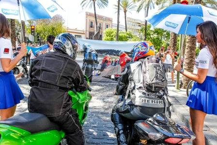 En las inmediaciones de la Plaza de la Alameda Cristina los motoristas parados ante un semáforo rojo se encontraban de repente en una improvisada parrilla de salida en la que podían recrear la sensación de estar esperando al semáforo de salida de un gran premio. Mientras las azafatas protegían a los participantes del sol con sus grandes paraguas, una imagen de la carrera se desplegaba ante ellos a la vez que se les animaba a unirse a la Ola Azul, la afición del Calvo Team.
