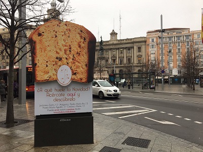 ¿A qué huele la Navidad? En el centro de Zaragoza, las calles desprenden un delicioso aroma a panettone. Es la respuesta a esa misma pregunta que la panadería Bakery and Cakes realiza en su última campaña de Exterior. Una acción tan llamativa como sabrosa para la que ha contado con JCDecaux. Su departamento de innovación, JCDecaux Innovate, ha creado un soporte coronado por el producto estrella de esta panadería-pastelería (con cinco establecimientos en el centro de Zaragoza), un vistoso panettone. Lo ha hecho con un enorme corpóreo 3D que presenta todo lujo de detalles para lograr el máximo realismo posible para este dulce de origen italiano. Desde cuidados relieves hasta un dispensador de olor a avellana y chocolate que hace de la campaña una idea original e irresistible. ¡Para comérsela!