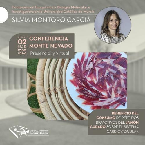 El próximo 2 de marzo, Silvia Montoro, investigadora de la Universidad Católica de Murcia, especializada en biología molecular aplicada a la carne y los productos cárnicos, impartirá la Conferencia Beneficio del consumo de péptidos bioactivos del jamón curado sobre el sistema cardiovascular. En ella tratará de los numerosos beneficios que aporta este producto de nuestra gastronomía a la mejora de nuestra la salud y bienestar, así como de su contribución a reducir el riesgo de desarrollar enfermedades, como por ejemplo, las cardiovasculares.