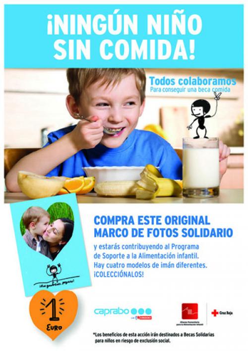Caprabo y la Cruz Roja colaboran, por cuarto año consecutivo, en el programa de ayuda a la alimentación infantil ¡Ningún niño sin comida!, una iniciativa solidaria que recoge fondos para pagar becas de alimentación a niños y niñas en riesgo de exclusión social. En sus tres primeras ediciones, la Cruz Roja y Caprabo, gracias a las aportaciones de los clientes del supermercado, sumaron 199 becas comida para un curso escolar completo.