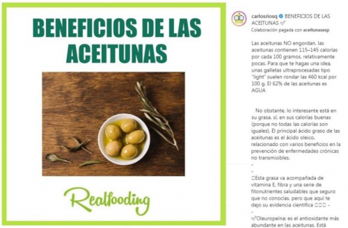Por ello, y para aclarar este mito, Grupo Cazorla se suma a las palabras del dietista-nutricionista creador del movimiento Realfooding, Carlos Ríos, que ha compartido en su cuenta de Instagram los beneficios de las aceitunas que “puedes obtener con 7-10 aceitunas al día, siendo un snack realfooder, económico y de nuestra tierra, ya que nuestro país es el líder mundial de las aceitunas”: