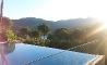 La vivienda, con capacidad para 8 personas, se halla dentro de una extensa parcela de 1800 m2, en la que encontraremos zona infantil y zona de barbacoa, además de una atractiva e impresionante piscina infinity pool, cuyas aguas parecen deslizarse montaña abajo.
