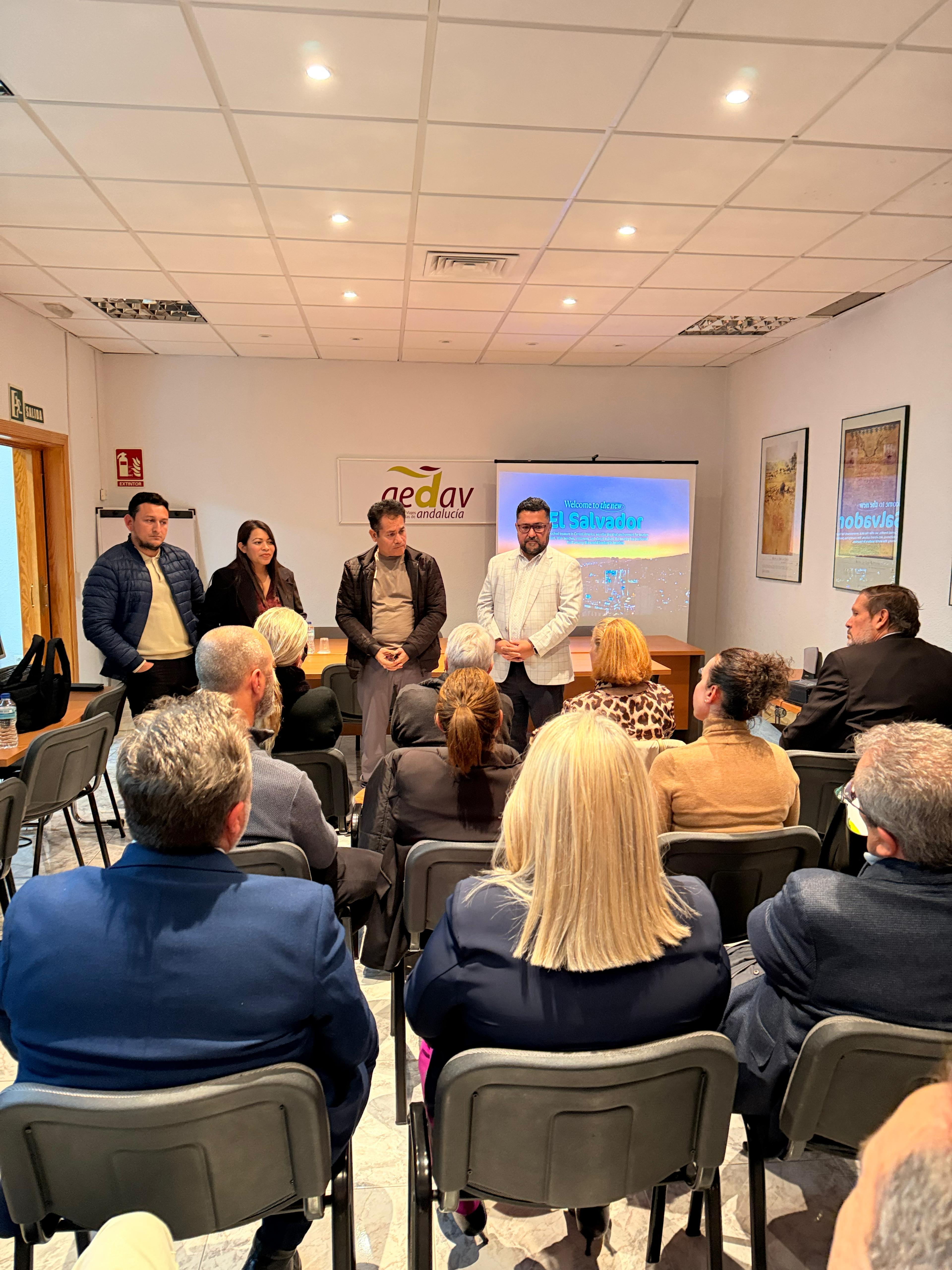 Miembros de la Cámara Salvadoreña de Turismo (CASATUR) dieron a conocer esta semana el destino El Salvador a agencias de viajes de Andalucía en una jornada profesional celebrada en la sede de la AEDAV, en Torremolinos (Málaga). El encuentro se enmarca en las acciones de promoción internacional que impulsa la Cámara para fortalecer la presencia del país en el mercado español.