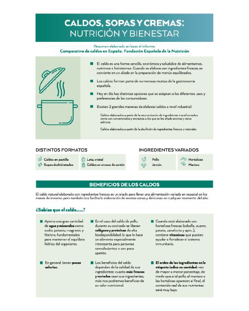 José Manuel Ávila, Director General de la Fundación Española de la Nutrición, comenta que "los caldos han sido siempre un pilar de la gastronomía tradicional española, tanto por su valor nutritivo como por su sabor. Cuando se elaboran con ingredientes naturales y un bajo contenido de sal, se convierten en una opción práctica y saludable, plenamente alineada con las dietas tradicionales mediterránea y atlántica. Además, la forma de elaboración y el porcentaje de los ingredientes son factores fundamentales a la hora de elegir un buen caldo."