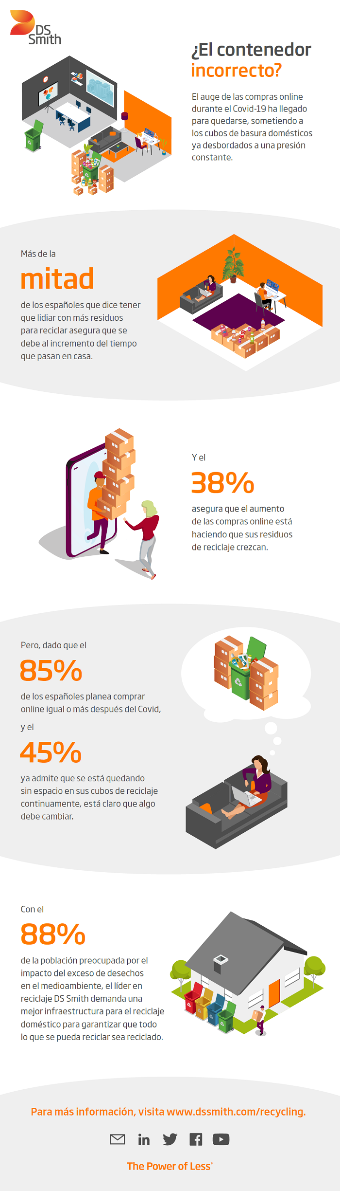 DS Smith apunta que, a medida que observamos cómo cada vez llega más cantidad de packaging a nuestros hogares, debemos asegurarnos de contar con la infraestructura adecuada para hacer frente al reciclaje de los mismos.