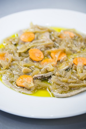 Guiso de mollejas de ternera estofadas con vermú de Bailén