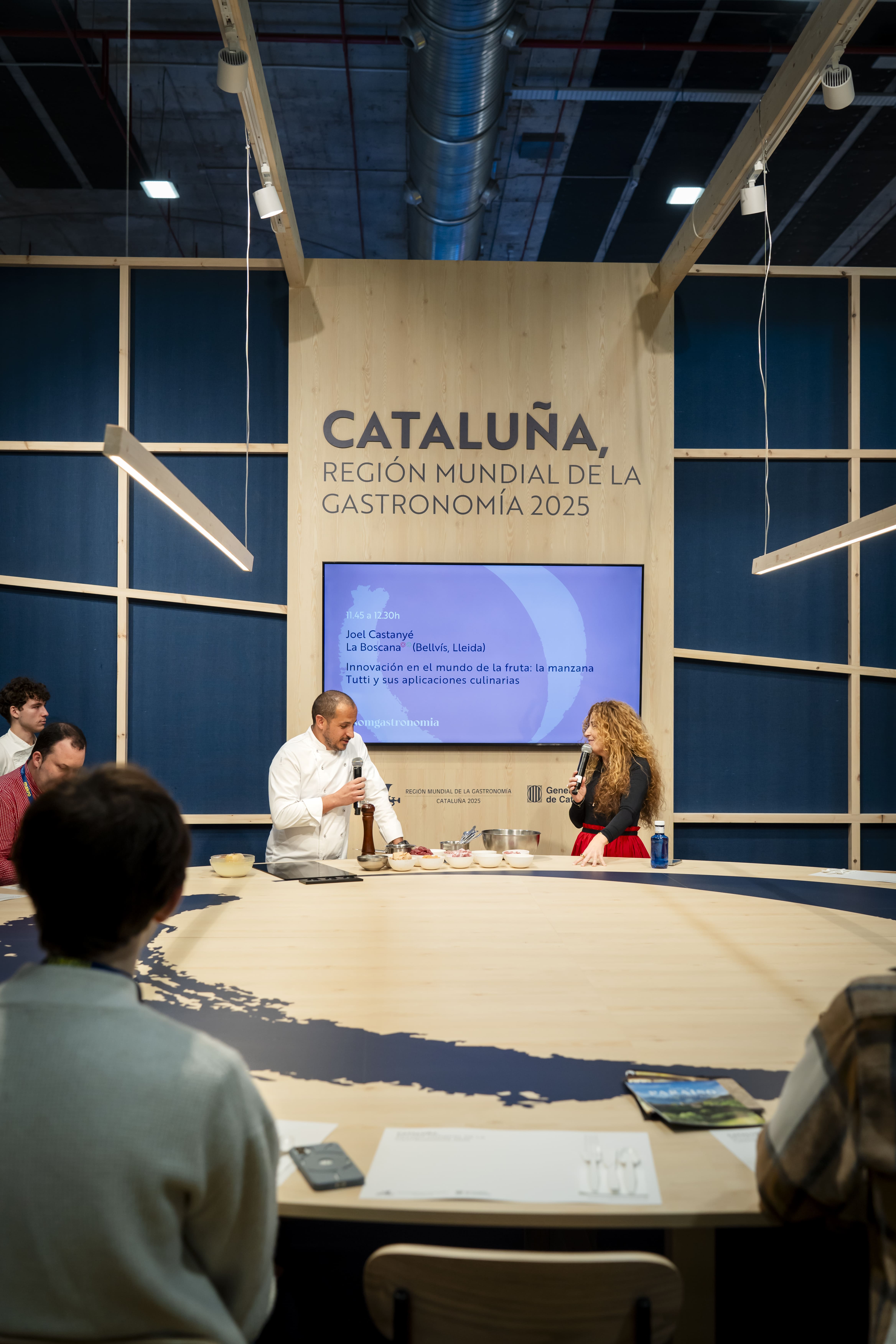 Uno de los momentos destacados de la participación catalana en el Salón Gourmets será el evento gastronómico Menú Cataluña, Región Mundial de la Gastronomía 2025, organizado por Prodeca el 7 de abril en el Aula Gourmets. Esta experiencia culinaria estará conducida por la periodista Belén Parra y contará con la participación de chefs de renombre como Paco Pérez (Miramar*), Jeroni Castell (Les Moles), y Mar Ibáñez (AÜRT). Los platos incorporarán ingredientes de expositores catalanes, como el aceite de L’Olivera, la miel de Torrons Alemany 1879 y los cítricos de Novacoop Mediterrània, con un maridaje a cargo de Cyril Vermeulen, del Celler de Can Roca**.