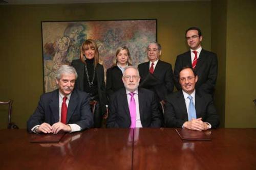 El Excelentísimo Sr. Rector D. Carlos Berzosa, el Vicerrector de Relaciones Institucionales y Cooperación, Rafael Hernández Tristán, y la Vicedecana de Ciencias Económicas y Empresariales, Esther Fidalgo, representaron a la Universidad Complutense en el acto de firma de la Cátedra, mientras que Juan José Roque y Fernando Pasamón, socios de la industria de Distribución y Consumo de Deloitte, actuaron en representación de la firma de servicios profesionales.