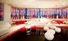 Un muro iluminado en un intenso color fucsia da la bienvenida a los viajeros de la zona aire del Aeropuerto de Ibiza, anticipando el llamativo diseño de un establecimiento que destaca entre el resto de locales del aeropuerto.