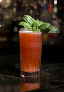 Preparación: Combina todos los ingredientes en una coctelera de aluminio. Añadir las hierbas. Agitar rápidamente por 8 a 10 segundos. Servir lentamente en un vaso con hielo. Servir con soda. Adornar con las ramas de la albahaca y una pizca de aceite balsámico.