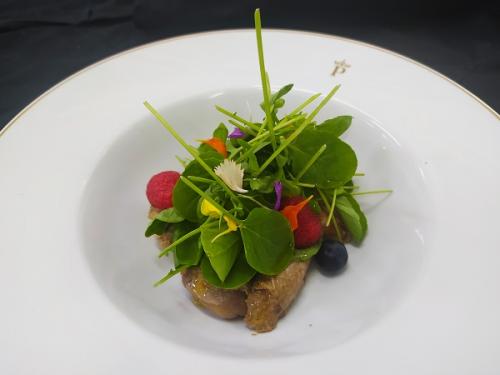 Para abrir boca, trucha de río al humo con romero y champiñón natural laminado aderezado con escamas de sal y tomillo. A continuación, se servirán berros con codorniz cocinada macerada con hierbas y acompañada con frutos rojos. Como plato principal llegará a la mesa un lomo ciervo asado con aromáticas, castañas, crema de manzana y menta. Y como postre, una divertida propuesta a base de nueces caramelizadas con miel y una tisana de hierbas, ya que en aquella época era habitual la preparación de infusiones en bolsas de cuero rellenas de agua y cantos rodados calentados al fuego.