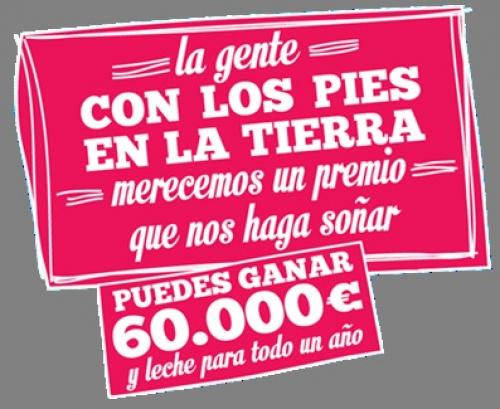 Anímate y participa. Un gran premio de 60.000€ puede ser tuyo. Y si no eres el afortunado, puedes participar en el sorteo de 10 premios de leche para todo un año.