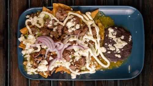 Como Entrante, se halla el afamado Guacamole en dos versiones (acompañado de totopos o cortezas). Y, a partir de ahí, los Chilaquiles con variadas opciones para prepararlos al gusto de cada comensal con diferentes salsas (verde o roja -en sendas versiones picantes-, así como de frijol), ingredientes o proteínas (secreto de cerdo, huevos, picadillo de chorizo, filetes de pollo, vegetal, Arrachera, cochinita pibil o camarón) y guarnición (queso costeño, nata ácida, lechuga, cebolla y frijoles refritos).