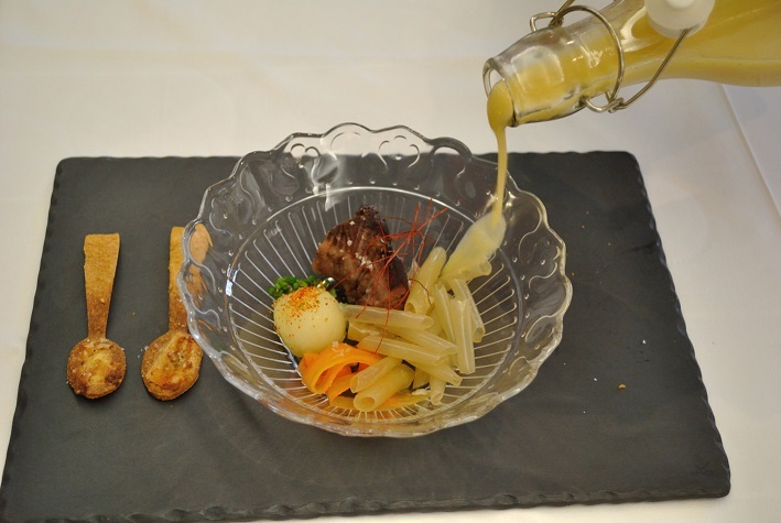 Los platos presentados, que tendrán un precio unitario de 2,5 euros servidos con una caña o vino, poseen nombres tan sugerentes como Capuchino de setas; Trueque de mar y huerta; Los macarrones que se me cayeron al cocido; Madrid en una cuchara o Mil y una noches, y compiten con otros tan directos como Garbanzos con manitas de cordero; Judías blancas con chorizo; Potaje de pueblo con bacalao confitado; Marmitako de pulpo; Sopa manchega al pan de Jagermeister o Crema de marisco con terminación de gambas y cangrejo rallado.