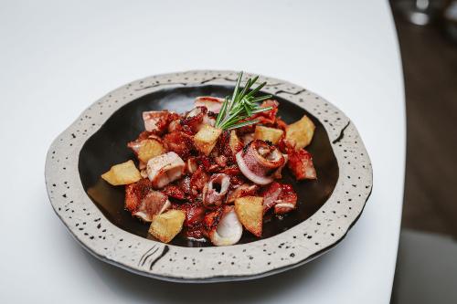 Toda la propuesta gastronómica del restaurante la firma Íñigo Urrechu, jefe de cocina y director gastronómico del Grupo Urrechu, propietarios de este espacio. Urrechu propone para la zona de barra con mesas altas una amplia carta con opciones que van desde las frituras a los embutidos, los productos del mar y diversas opciones de picoteo en las que queda de manifiesto la creatividad que le caracteriza. Así, entre las creaciones que más destacan encontramos el Tiradito de ventresca, salsa yuzu ponzu y oliva esférica; el Tataki de atún con leche de tigre nikkei y lima rallada; la Oreja crocanti con chipirón y tomate dulce –muy especial–; las Churripapas, una versión propia de las bravas con picante; los Dados de solomillo, glaseados sobre crema de patata; o el Ceviche de corvina con langostino tigre y guacamole. Todos ellos son platos perfectos para compartir y para disfrutar de una manera más informal acompañados de referencias de vino muy especiales o de champagnes en su barra circular diseñada para degustar espumosos. En definitiva, una experiencia divertida y sin corsés.