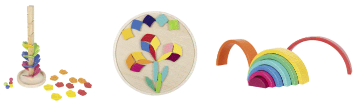 - Arcoíris de madera: contiene 8 piezas. A partir de 1 año.