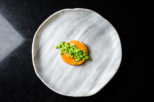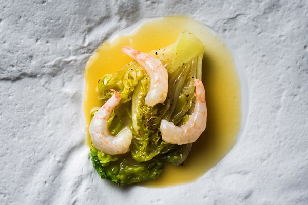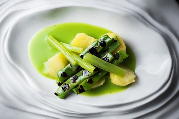 Las verduras no son una excepción… y con ellas justamente elabora un ‘Viaje vegano’, compuesto por 10 platos en los que lógicamente la temporada manda. Entre los pasos –‘sorpresa’, ya sabéis cómo funciona Sáez-, se pueden encontrar Pochas con níscalos y verduras, Zanahoria, vainilla y guisante lágrima, Caldo de vainas con ensalada de patata y borraja o Boletus salteado con berenjena asada. Este menú, cuyo precio es de 48 €, hay que reservarlo con 24 horas de antelación para disfrutarlo en su máxima expresión debido a las elaboraciones de algunos platos.