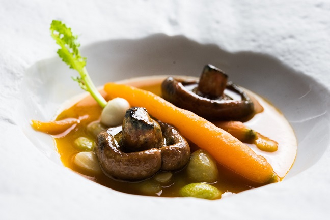 Más allá de bordar la perdiz, la grouse o el corzo, Sáez es un chef que mima el producto y es capaz de convertir en delirio un plato con berenjena. Desde hace unos meses uno de sus menús viajeros está elaborado exclusivamente con vegetales de temporada y ahora llegan novedades…