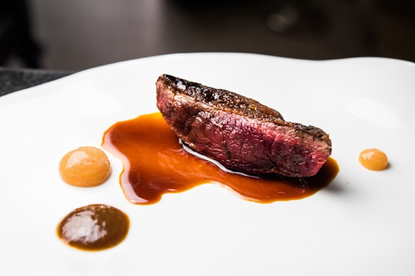 Así en esta propuesta ‘Madera de otoño’, encontramos joyas como la Ostra asada con escabeche de perdiz, la Oreja frita de cochinillo con carabinero y salsa de callos -en el que la huella del chef es inconfundible-, la Molleja de ternera con coliflor, el sorprendente Foie, anguila y remolacha, la elaborada -o mejor dicho, elaboradísima- Cigala con andouillette y otros platos más ‘llanos’ pero igualmente sabrosos e imprescindibles como sus Croquetas de jamón o los Callos a la madrileña, con legión de fans a la espalda… Por supuesto, como buen especialista en caza que es, no podía dejar de lado recetas como el Ravioli de corzo con carbonara de hierbas, el Lomo de ciervo asado, el Pato azulón con manzana y tamarindo o La Grouse. Porque sí, Iván cocina estas piezas como nadie, pero ante todo es un cocinero ‘de fondo’, capaz de transformar cualquier ingrediente en una obra de arte.