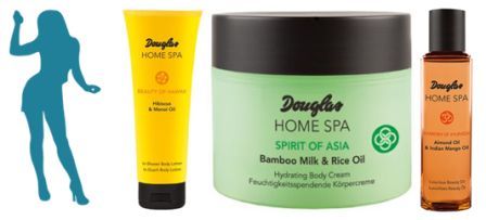Y por último, usar una fragancia corporal que cuide la piel tanto como los productos anteriores. Los Body Sprays de Douglas Home Spa o de Douglas Beauty System son la mejor opción: sin alcohol –para no resecar- refrescantes, con un aroma único y, además, con ingredientes que también contribuyen a la hidratación de la piel. En definitiva, una experiencia Spa 360º sin tener que salir del baño de casa… Precios: · Douglas Home Spa Aromatizador de habitación en sticks – 12,95€ · Douglas Home Spa Vela aromática de armonía – 12,95€ · Douglas Home Spa Exfoliante de aceite y azúcar – 12,95€ (200gr) · Douglas Home Spa Exfoliante de sal marina y azúcar – 12,95€ (200gr) · Douglas Home Spa Vitalising Bubble Bath – 10,95€ (500ml) · Douglas Home Spa Nourishing Shower Foam – €7.95 (200 ml) · Douglas Home Spa In-Shower Body lotion – 10,95€ (250ml) · Douglas Home Spa Crema hidratante corporal – 14,95€ (200ml) · Douglas Home Spa Luxurious Beauty Oil – 12,95€ (200ml) · Douglas Home Spa Body Spray sensual – 14,95€ (100ml) · Douglas Beauty System Ginger & Lime Body Spray – 9,95€ |