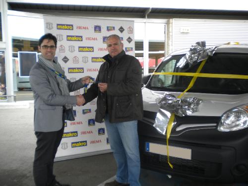 ¿Qué son 50 años? Para MAKRO, la fidelidad de unos clientes que crecen en sus 37 centros. Uno de ellos, Andreu Navas, propietario de la Patisseria Sanabras, ubicada en Tarragona, acaba de conseguir el mayor premio del concurso nacional de aniversario organizado por MAKRO en 2014: La furgoneta Renault Kangoo, de uso profesional, con la que este pequeño empresario del sector HORECA podrá hacer sus repartos cada día a sus clientes. “Se merece esta suerte”, ha afirmado el director del centro MAKRO de Tarragona, Rafael Pérez-Armenteros, cuando entregó el regalo al ganador.
