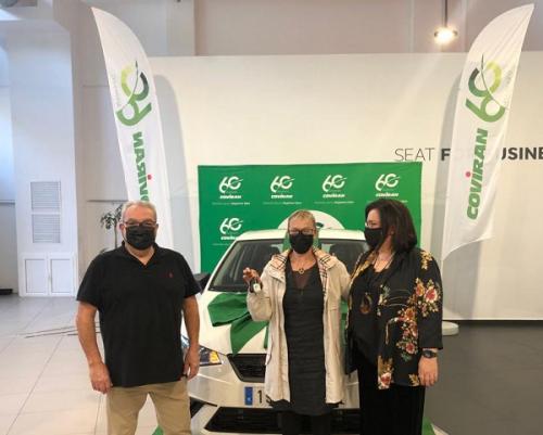 Covirán ha entregado hoy un coche, marca Seat Ibiza, valorado en más de 15.000 euros a la ganadora del primer GRAN SORTEO COVIRAN 60 ANIVERSARIO, Carmen Ureña Franco en la población de Badalona.